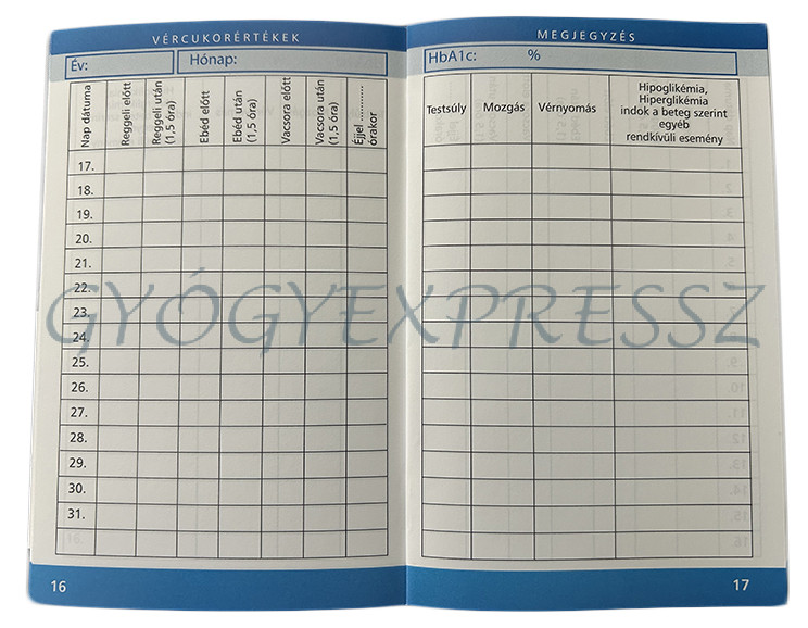 Diabétesz vércukor napló tablettával kezelt cukorbetegeknek
