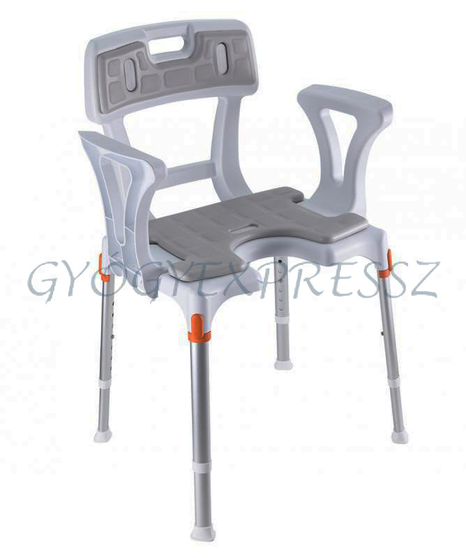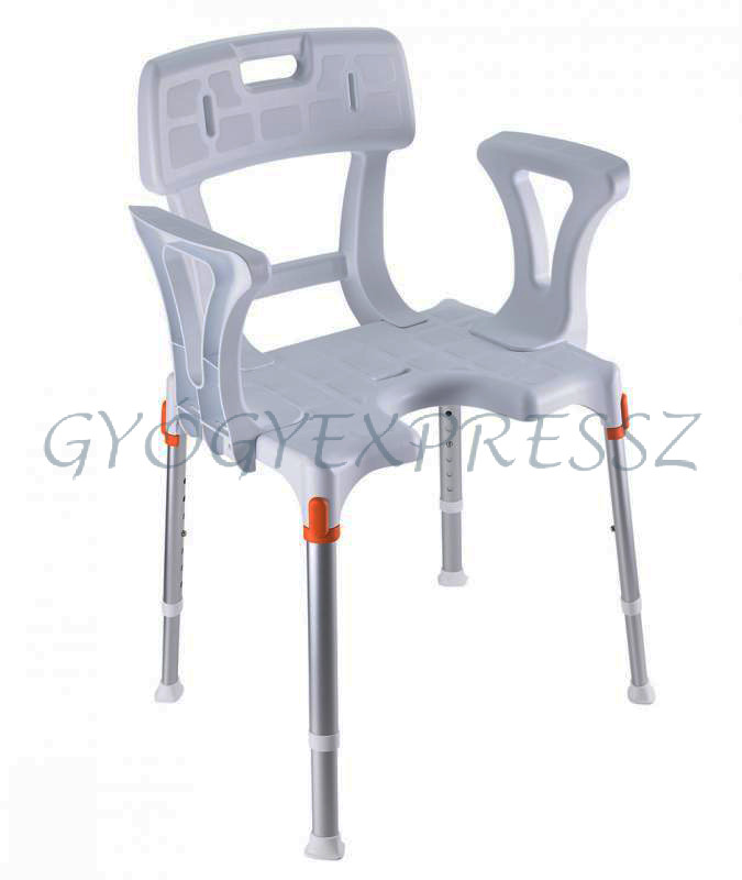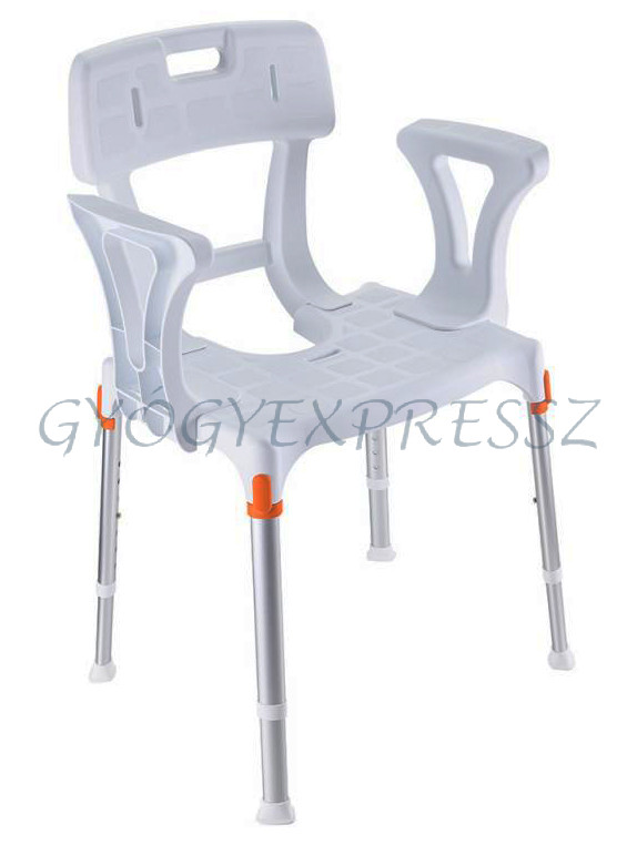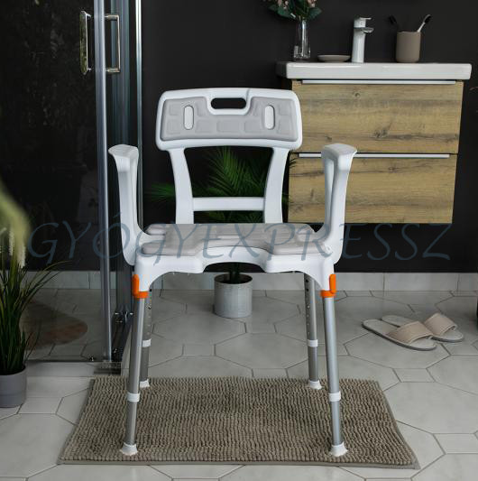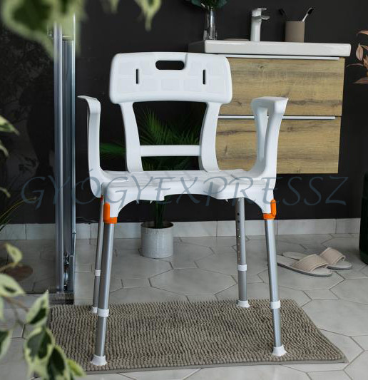 KING Zuhanyszék fürdetőszék háttámlával és karfával 150 kg-ig FEHÉR