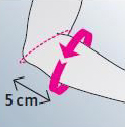 A könyökcsúcstól 5 cm távolságban az alkar körmérete, derékszögben behajlított alkarnál.